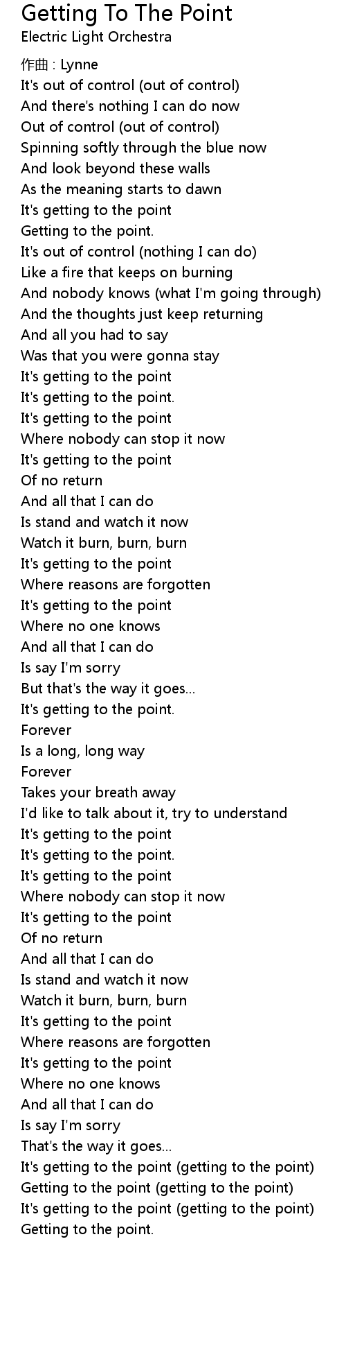| It's getting to the point (getting to the point) | |