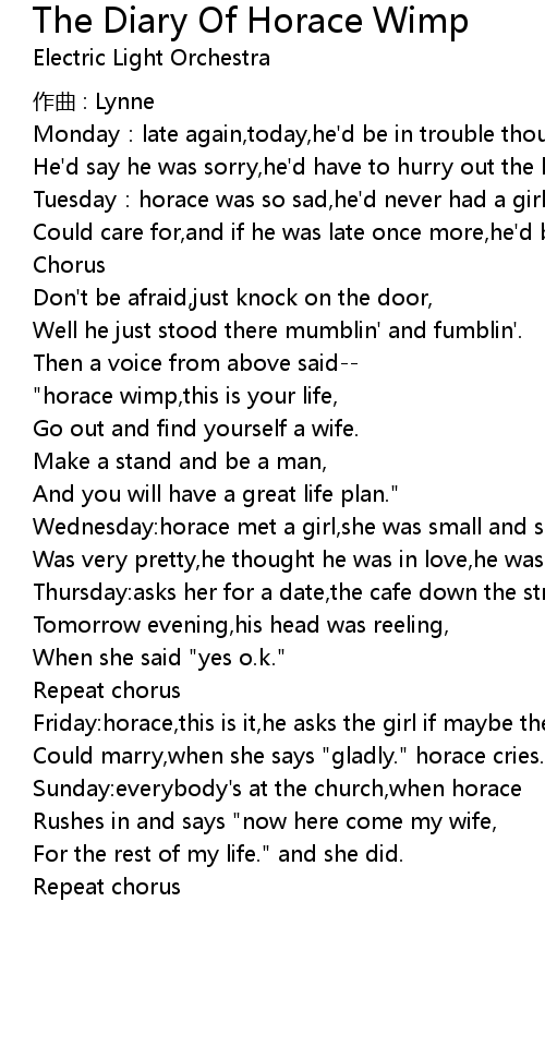 | Tuesday:horace was so sad,he'd never had a girl that he | |