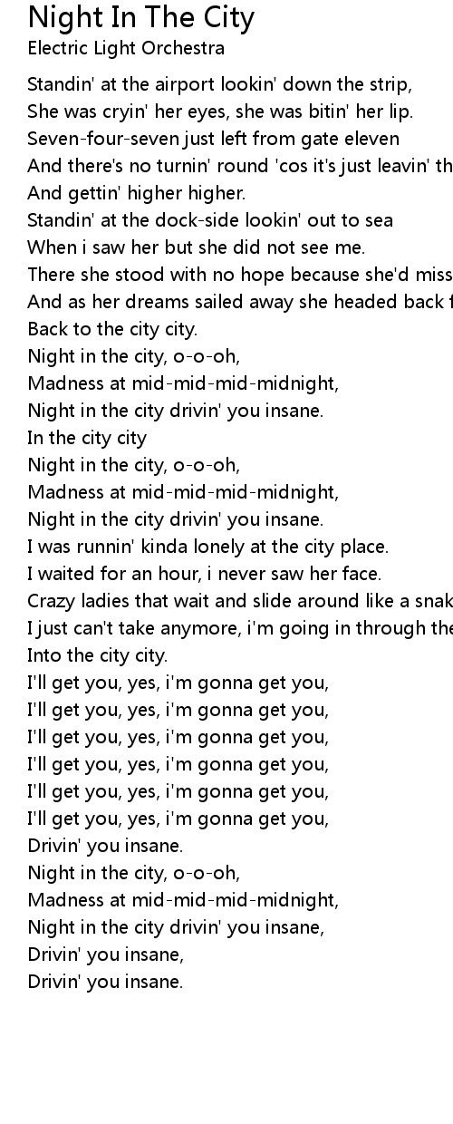 Night in the city, o-o-oh, |