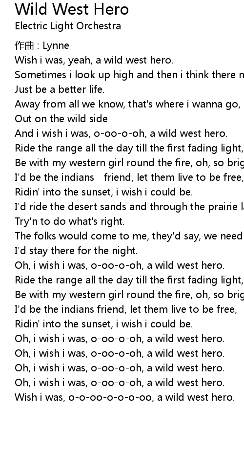 | And i wish i was, o-oo-o-oh, a wild west hero. | |