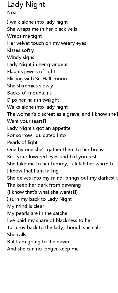 | I walk alone into lady night | |
