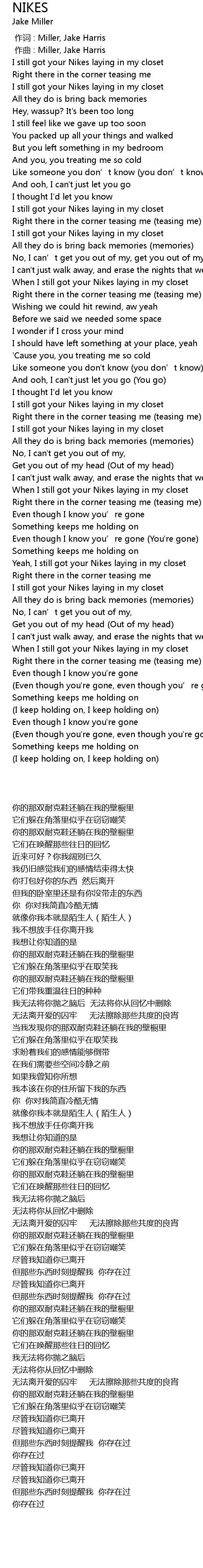 | [00:07.84] | I still got your Nikes laying in my closet |