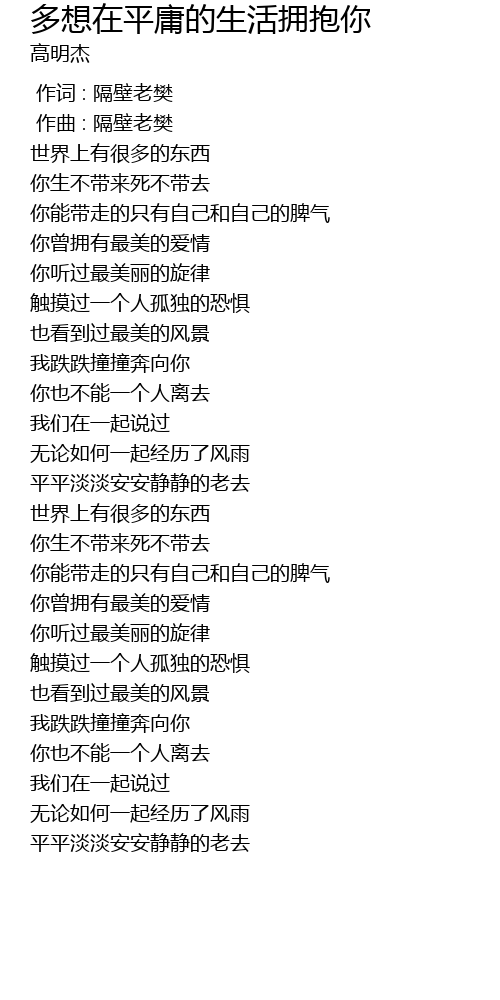 | [00:00.000] | 作词 : 隔壁老樊 |