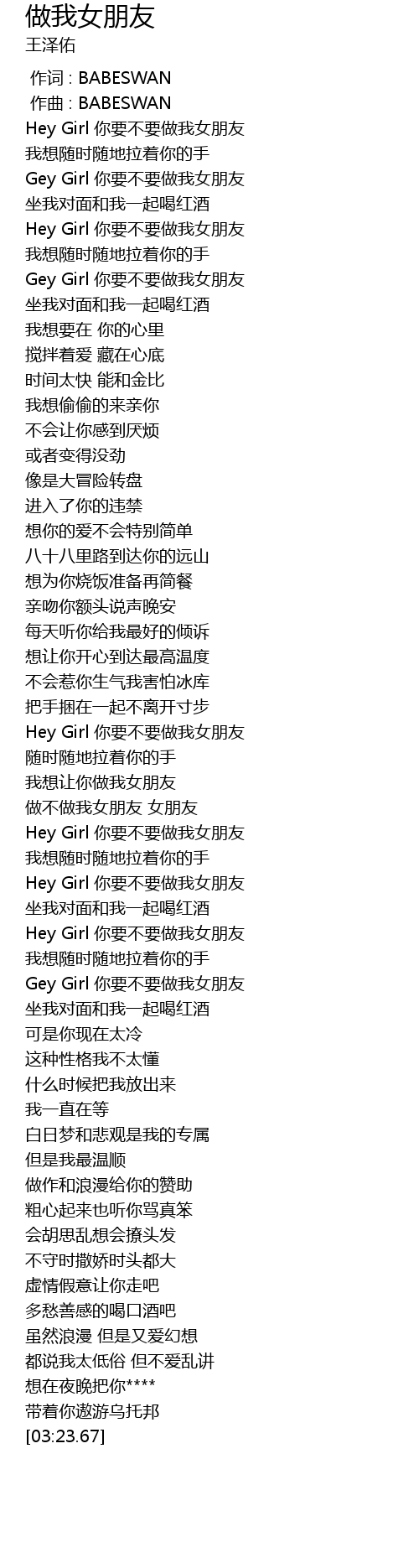 | [01:40.10] | Hey Girl 你要不要做我女朋友 |
