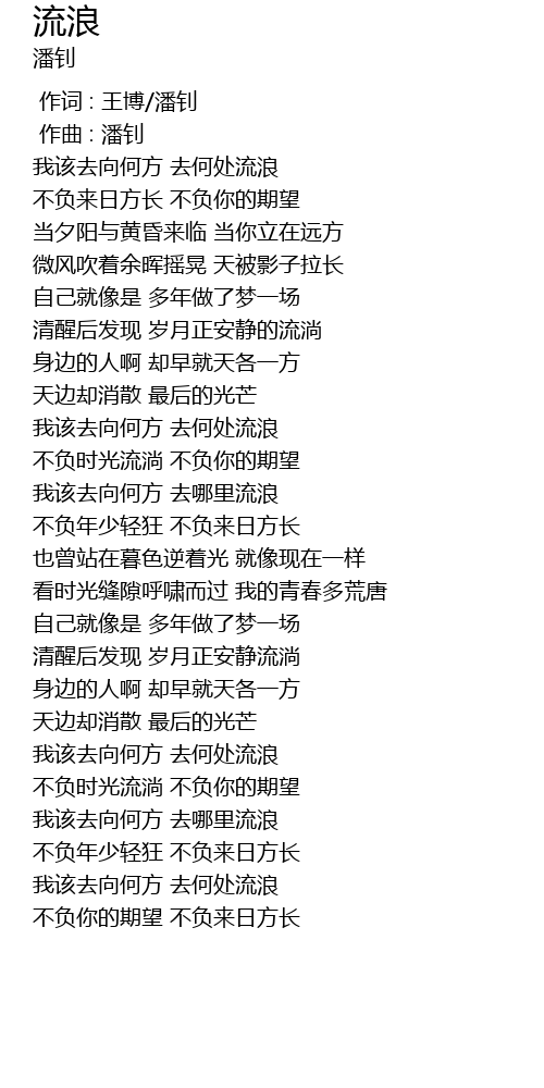 | [04:38.026] | 我该去向何方 去何处流浪 |