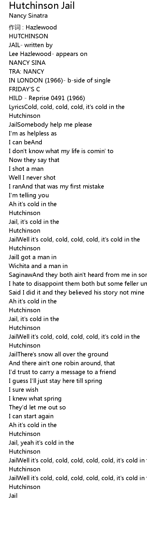 | JailWell it' s cold, cold, cold, cold, cold, it' s cold in the | |