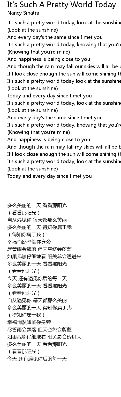 It's such a pretty world today, knowing that you're mine |