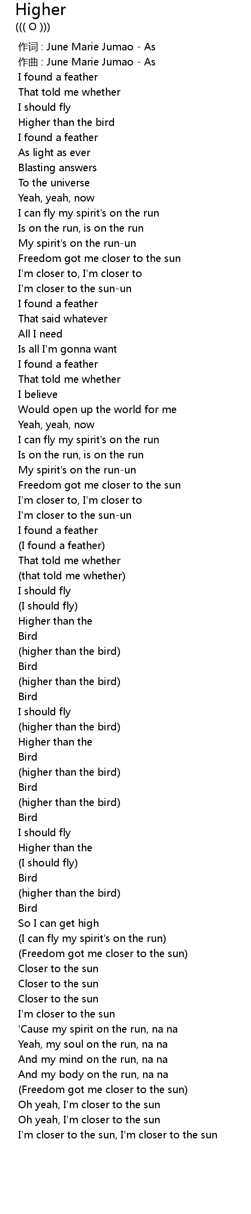 | [00:19.872] | Higher than the bird |