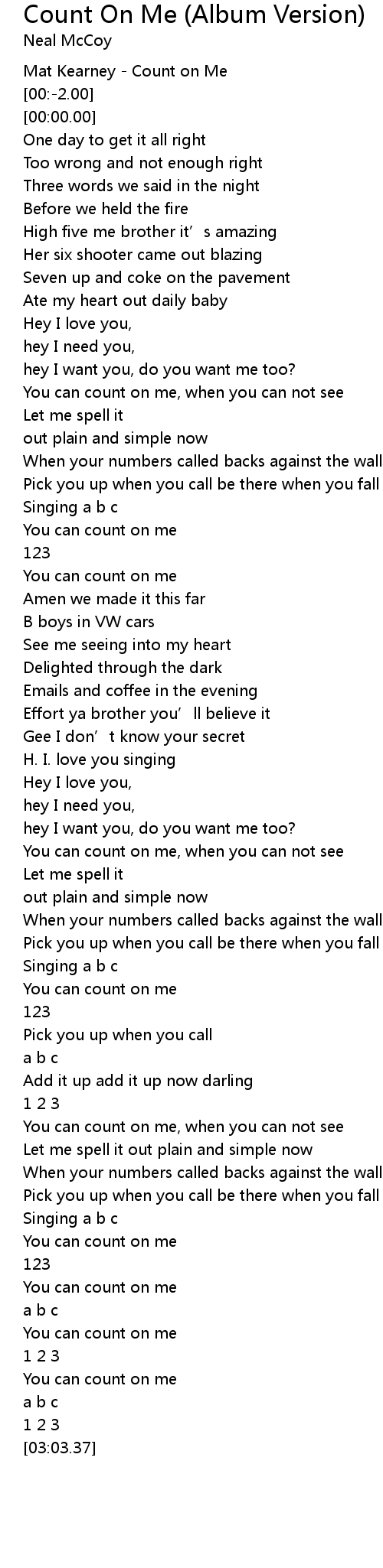 | [00:-4.00] | Mat Kearney - Count on Me |