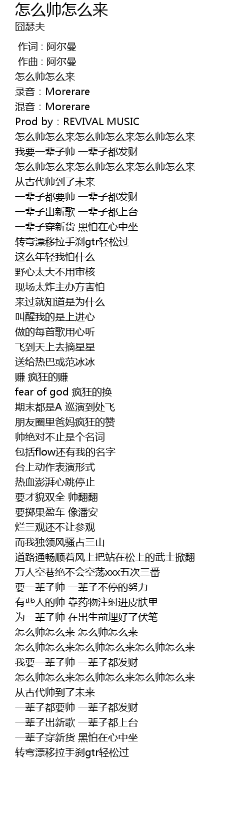 | [01:44.475] | 怎么帅怎么来 怎么帅怎么来 |
