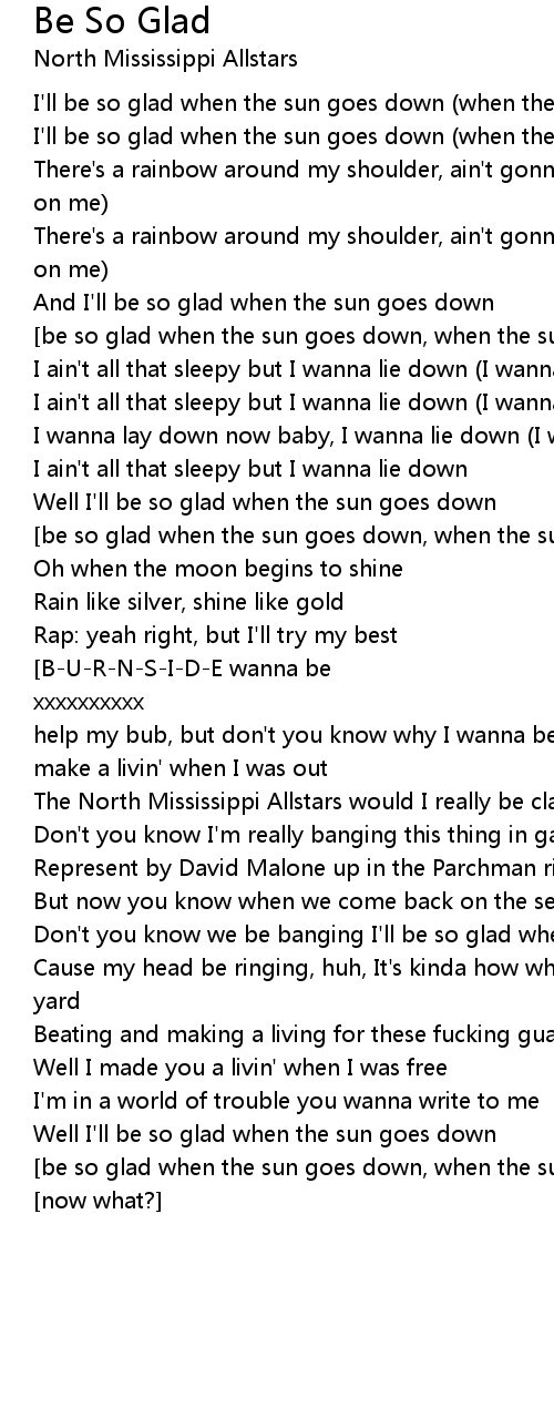 [be so glad when the sun goes down, when the sun goes down] |