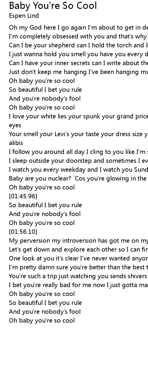 Your smell your Levi's your taste your dress size your see-through alibis |