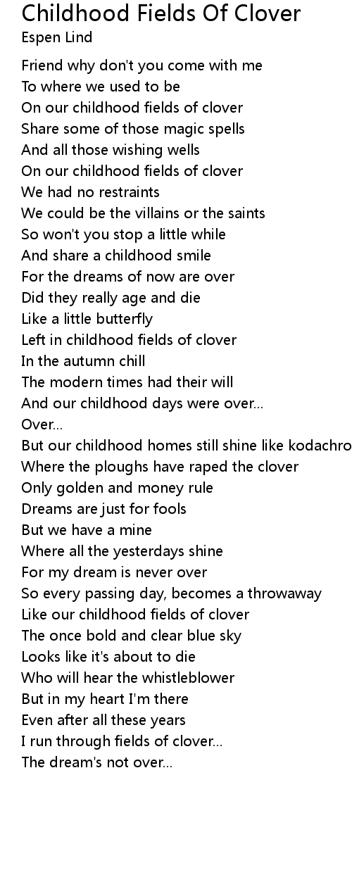 On our childhood fields of clover |