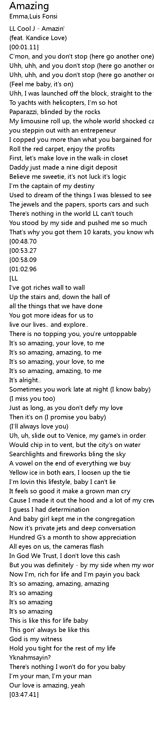 | [01:27.57][00:48.70] | It's so amazing, amazing, amazing |