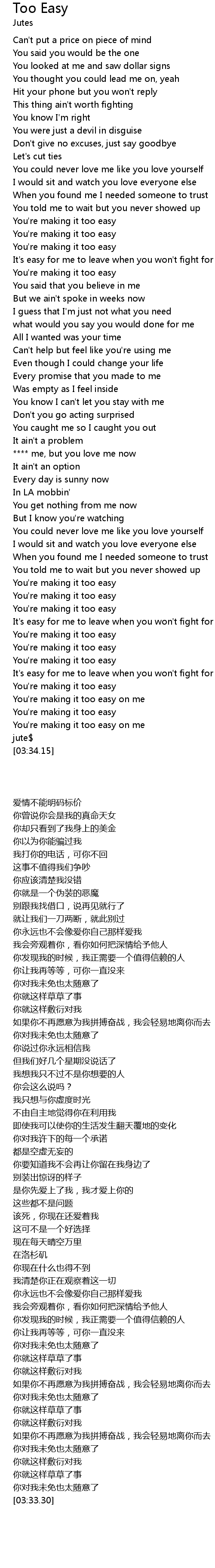 | [03:00.64] | You're making it too easy |