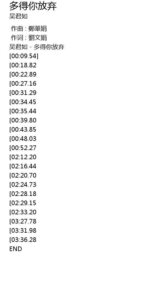 | [03:15.18][02:24.73][01:06.98] | 多得你放弃 还我自由 |