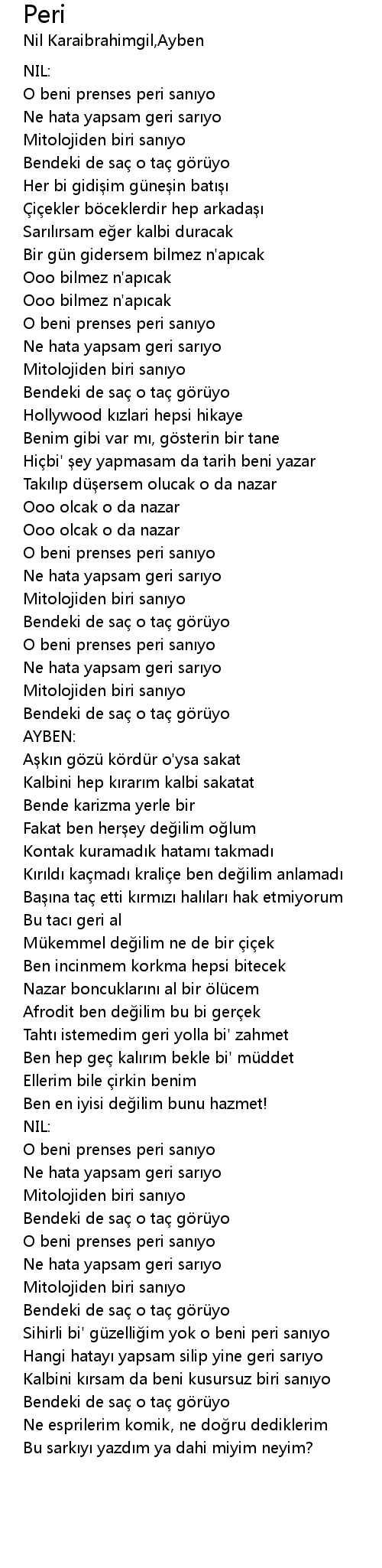 | Sihirli bi' gü zelli im yok o beni peri san yo | |