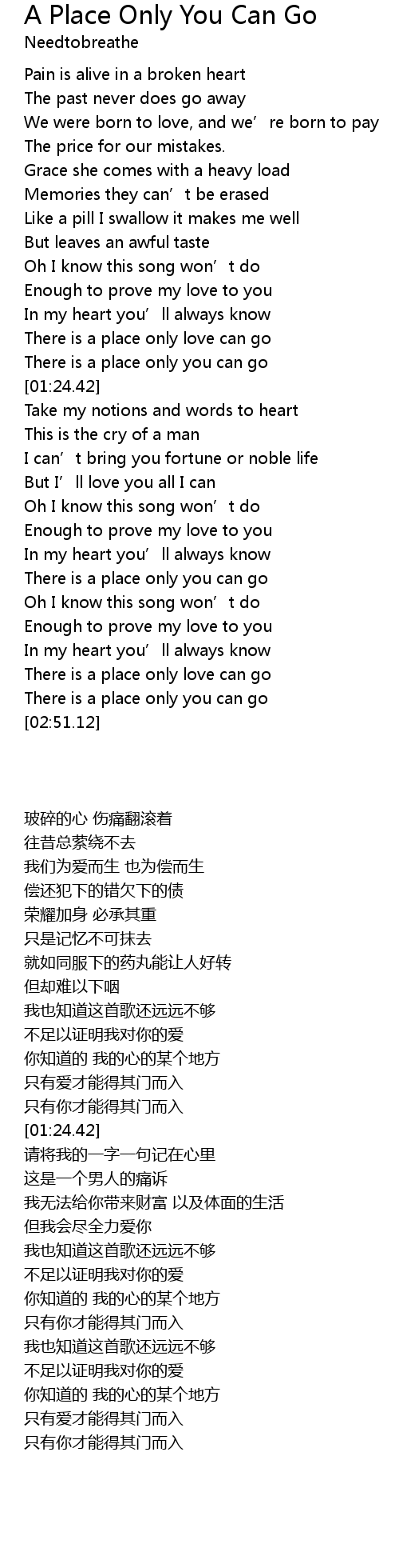 | [00:47.92] | Like a pill I swallow it makes me well |