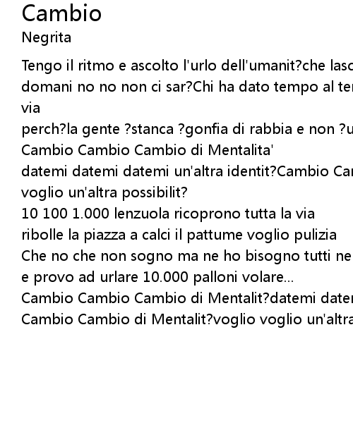 Cambio Cambio Cambio di Mentalit?datemi datemi datemi un'altra identit?Cambio Cambio Cambio di Mentalit?voglio voglio un'altra possibilit? |