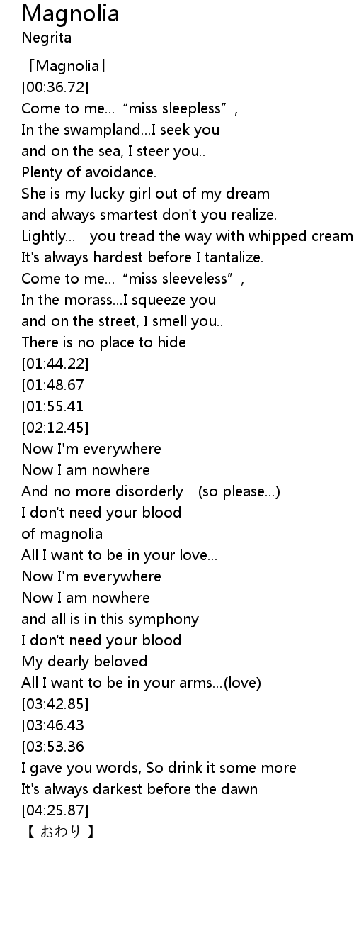 | [01:10.34] | Lightly... you tread the way with whipped cream |