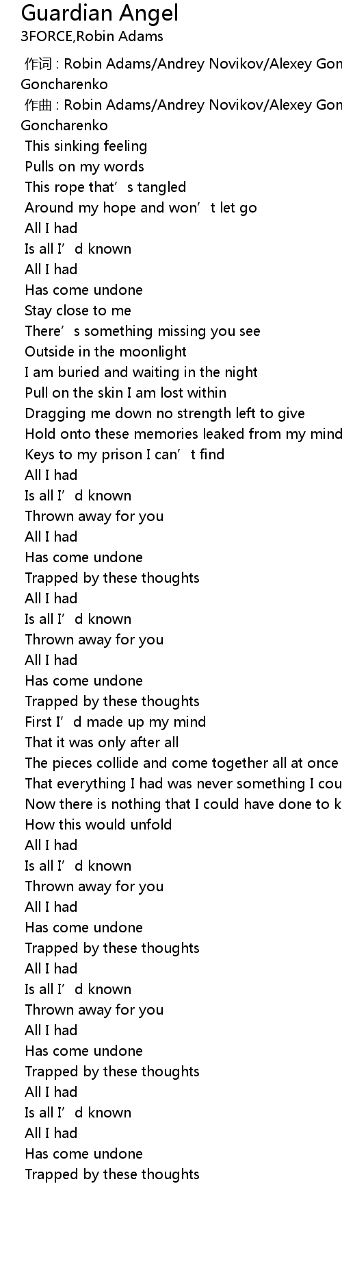 | [00:01.000] | zuo qu : Robin Adams Andrey Novikov Alexey Goncharenko Dmitry Goncharenko |
