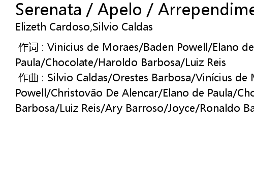 | [00:00.000] | 作曲 : Silvio Caldas/Orestes Barbosa/Vinícius de Moraes/Baden Powell/Christovão De Alencar/Elano de Paula/Chocolate/Sylvio Caldas/Haroldo Barbosa/Luiz Reis/Ary Barroso/Joyce/Ronaldo Bastos |
