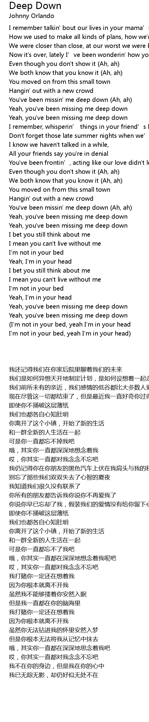 | [00:38.26] | You've been missin' me deep down (Ah, ah) |