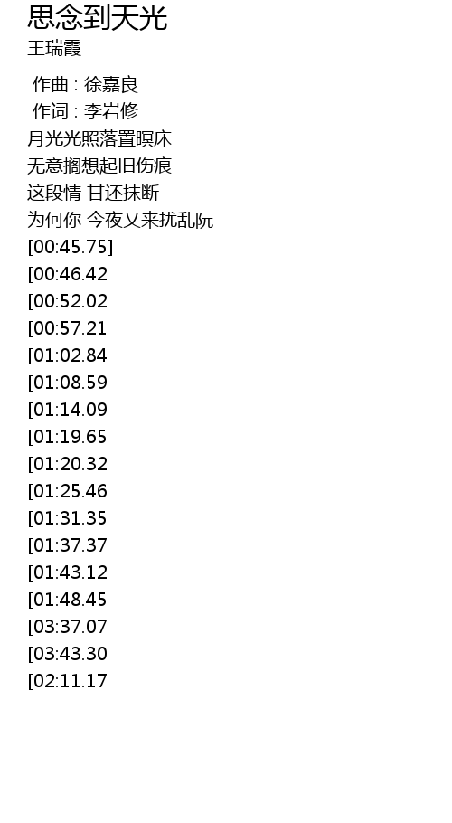 | [03:26.09][01:43.12] | 阮只好夜夜思念到天光 |