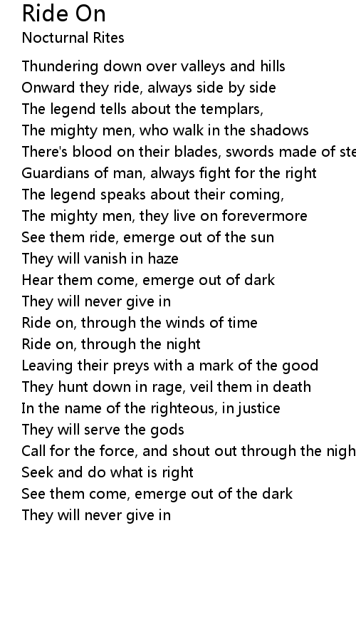 Ride on, through the night |