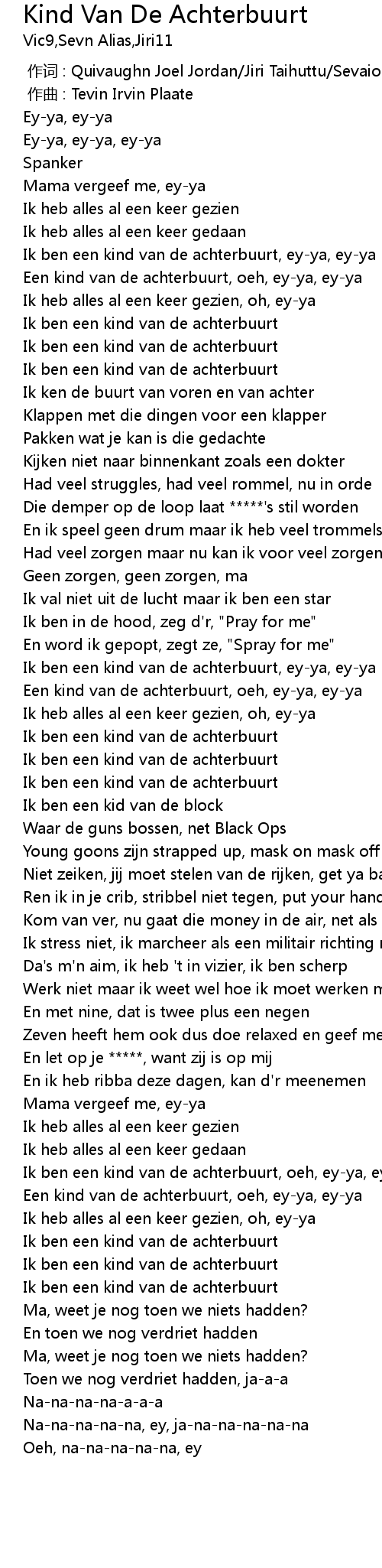 | [02:03.06] | Ik ben een kind van de achterbuurt, oeh, ey-ya, ey-ya |