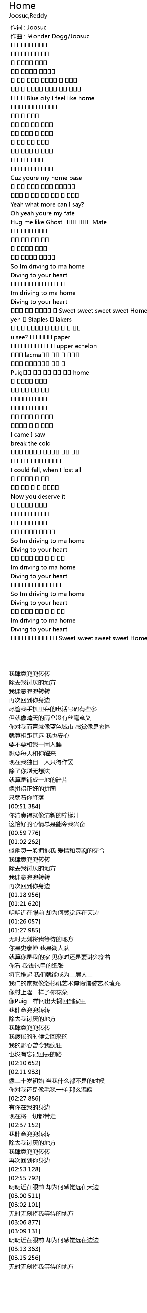 | [03:00.511] | Im driving to ma home |