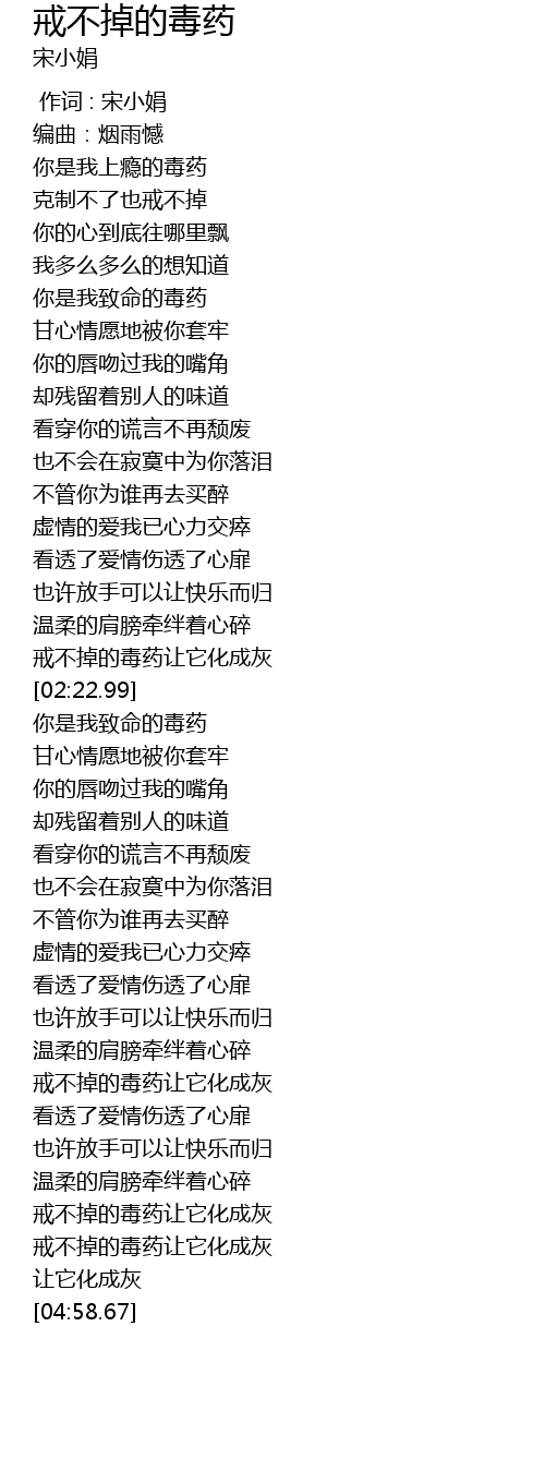 | [04:43.93] | 戒不掉的毒药让它化成灰 |