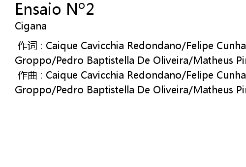 | [00:00.000] | 作词 : Caique Cavicchia Redondano/Felipe Cunha Santos/Victoria Groppo/Pedro Baptistella De Oliveira/Matheus Pinheiro |