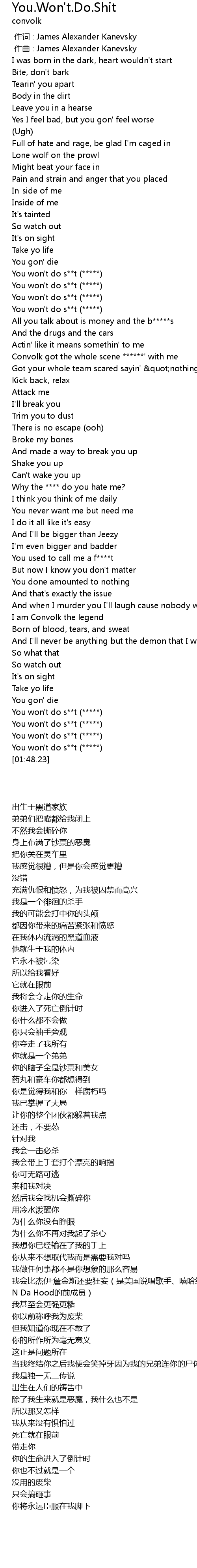 | [00:53.79] | Convolk got the whole scene ******' with me |