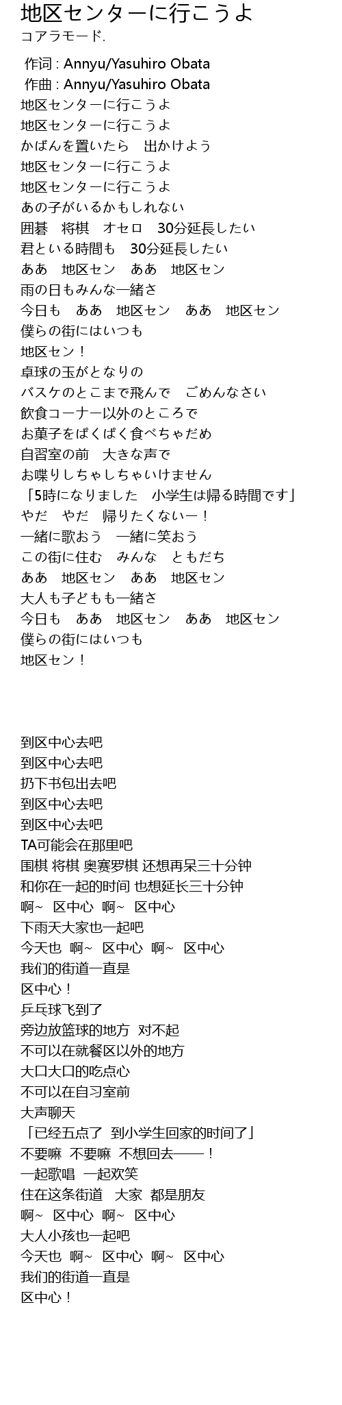 | [00:52.86] | 今日も ああ 地区セン ああ 地区セン |