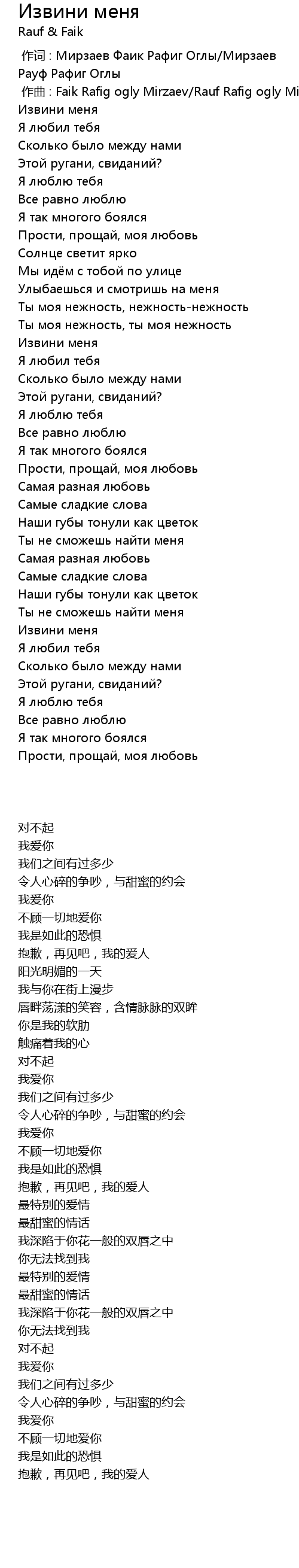 作词 : Мирзаев Фаик Рафиг Оглы/Мирзаев Рауф Рафиг Оглы |
