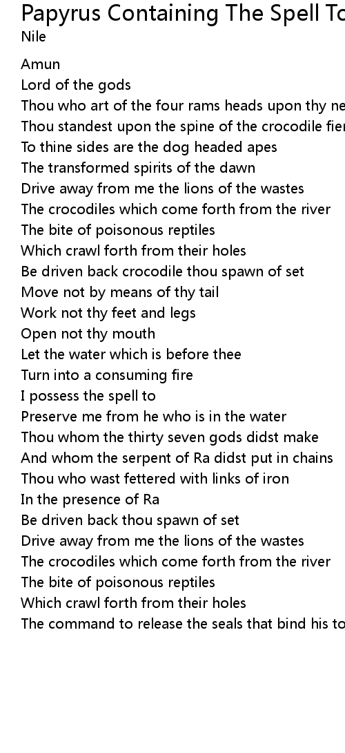 Papyrus Containing The Spell To Preserve Its Possessor Against Attacks From He Who Is In The Water Lyrics