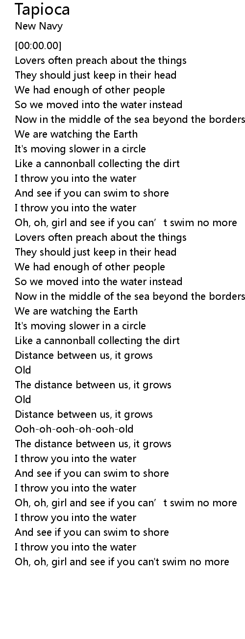 | [00:58.33] | Oh, oh, girl and see if you can' t swim no more |