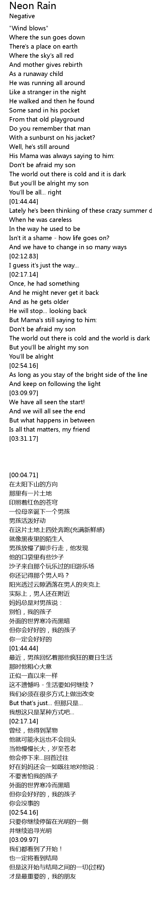 | [02:47.99] | But you'll be alright my son |