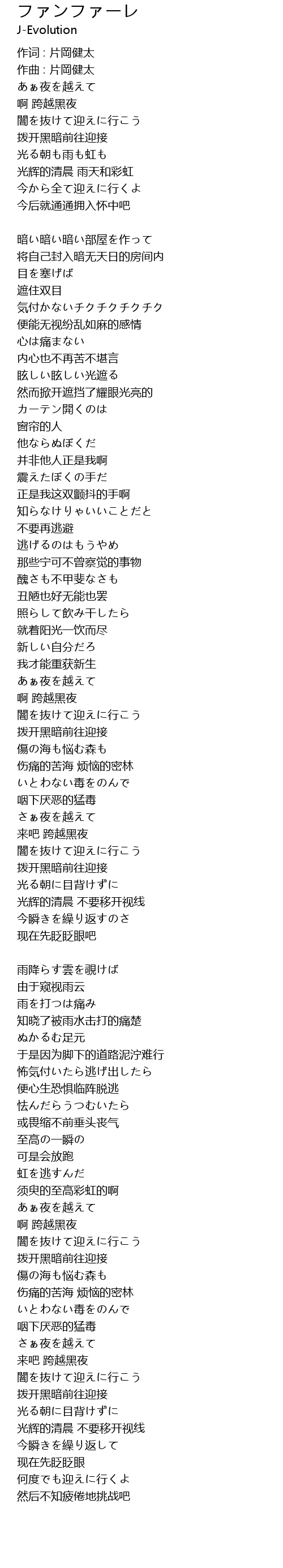 | 作词 : 片岡健太 | |