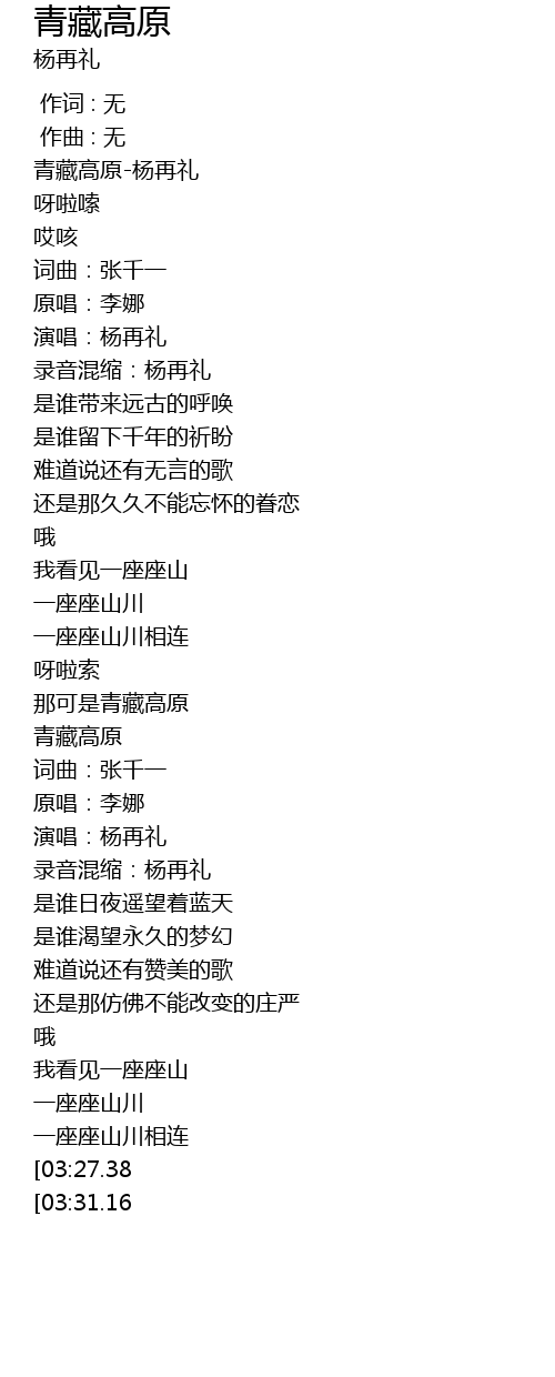 | [03:41.01][03:31.16] | na jiu shi qing zang gao yuan |
