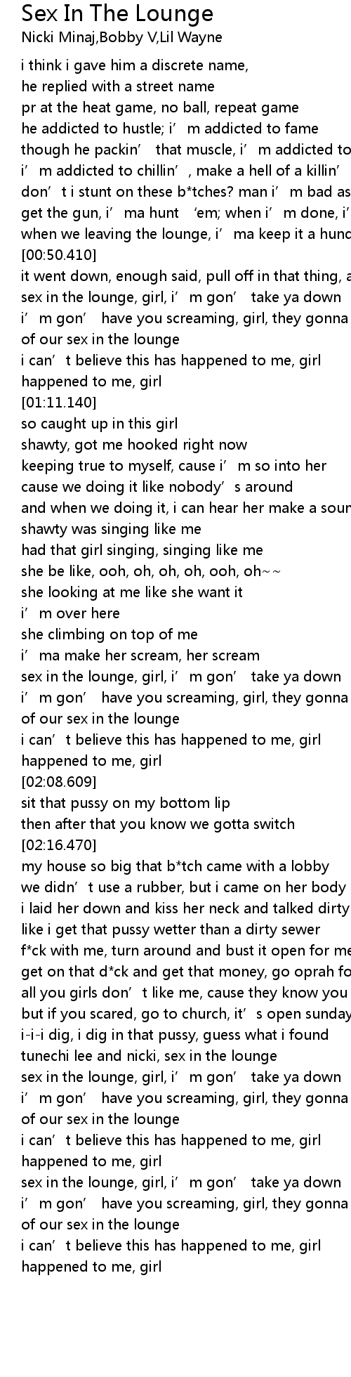 | [01:55.489] | sex in the lounge, girl, i’m gon’ take ya down |