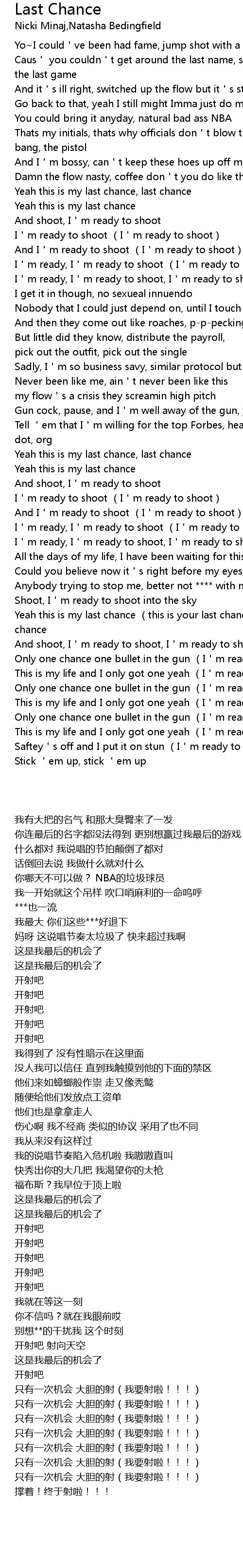 | [02:44.01] | Yeah this is my last chance (this is your last chance), last chance |