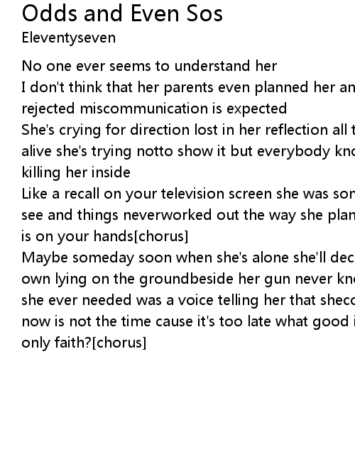 Maybe someday soon when she's alone she'll decide to take a life that's not her own lying on the groundbeside her gun never knowing she's not the only one all she ever needed was a voice telling her that shecould make a different choice now is not the time cause it's too late what good is god doing you when heis only faith?[chorus] |