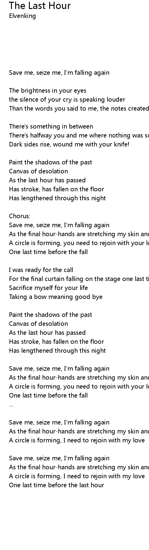 | [00:00.00] | Save me, seize me, I'm falling again |