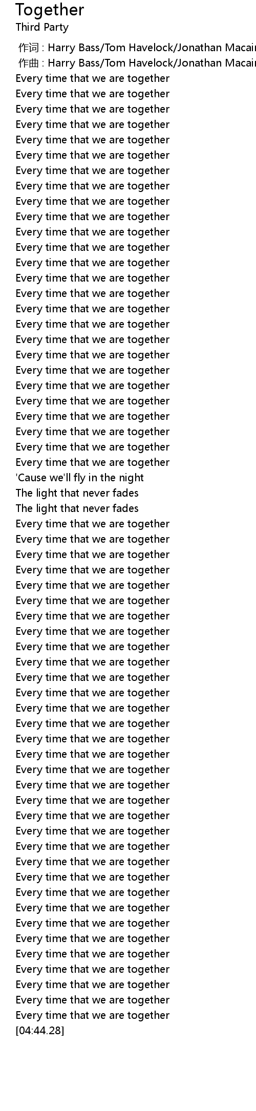 | [04:33.68] | Every time that we are together |