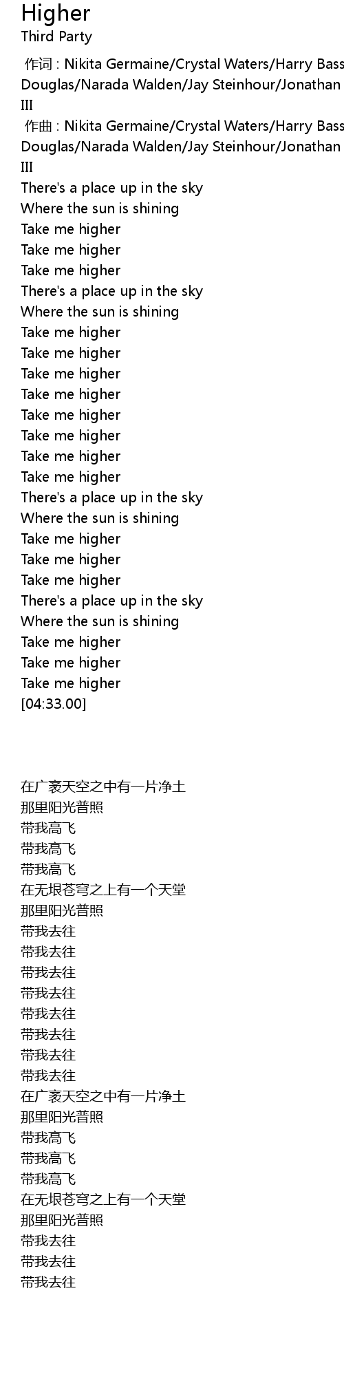 | [00:00.000] | 作词 : Nikita Germaine/Crystal Waters/Harry Bass/Theodore Douglas/Narada Walden/Jay Steinhour/Jonathan Macaire/Sally Dakota/W Thomas Davis III |
