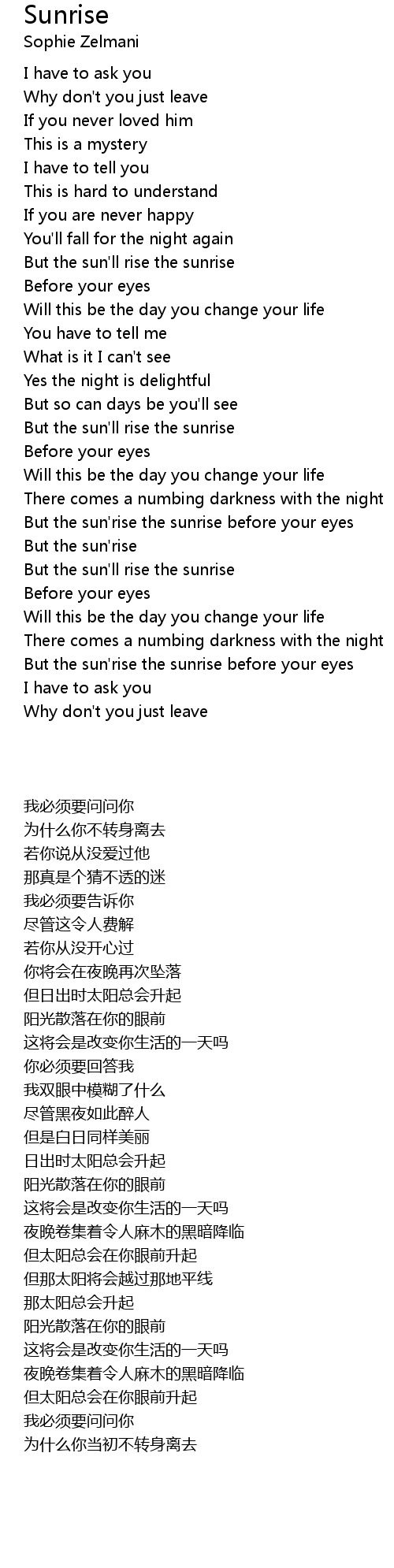 But the sun'rise the sunrise before your eyes |