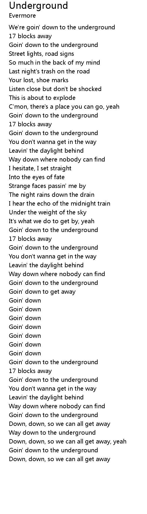 | Way down to the underground | |