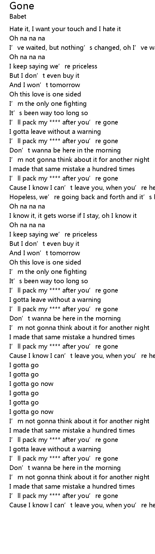 | [03:14.78] | I’ll pack my **** after you’re gone |